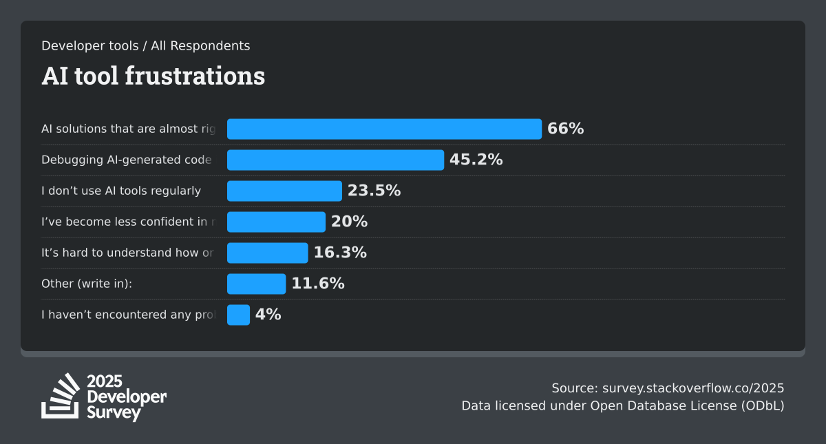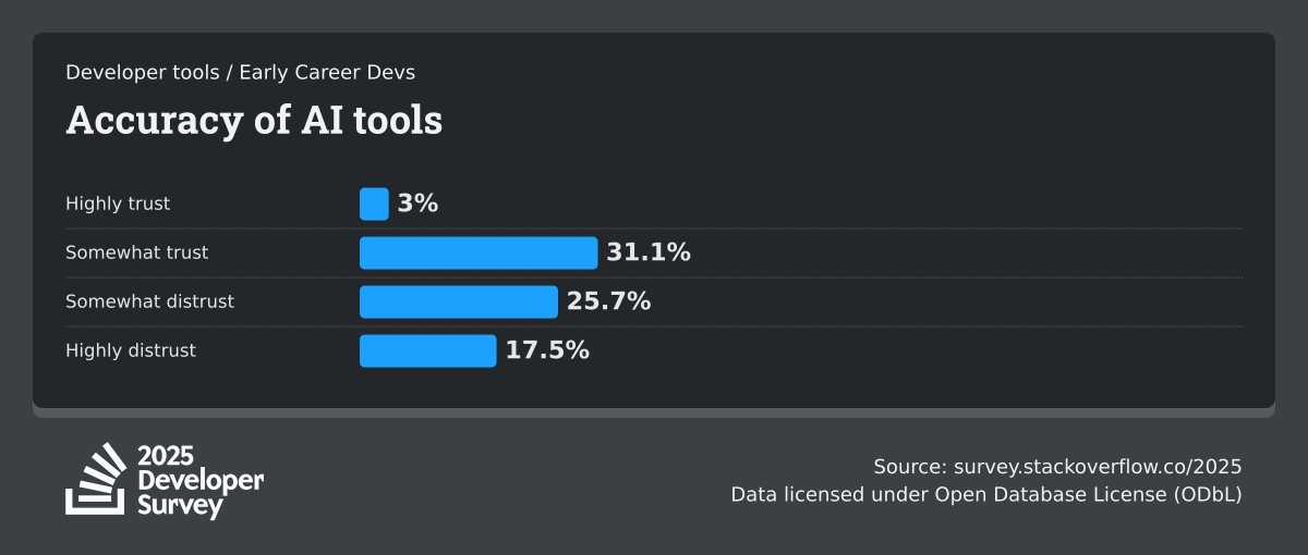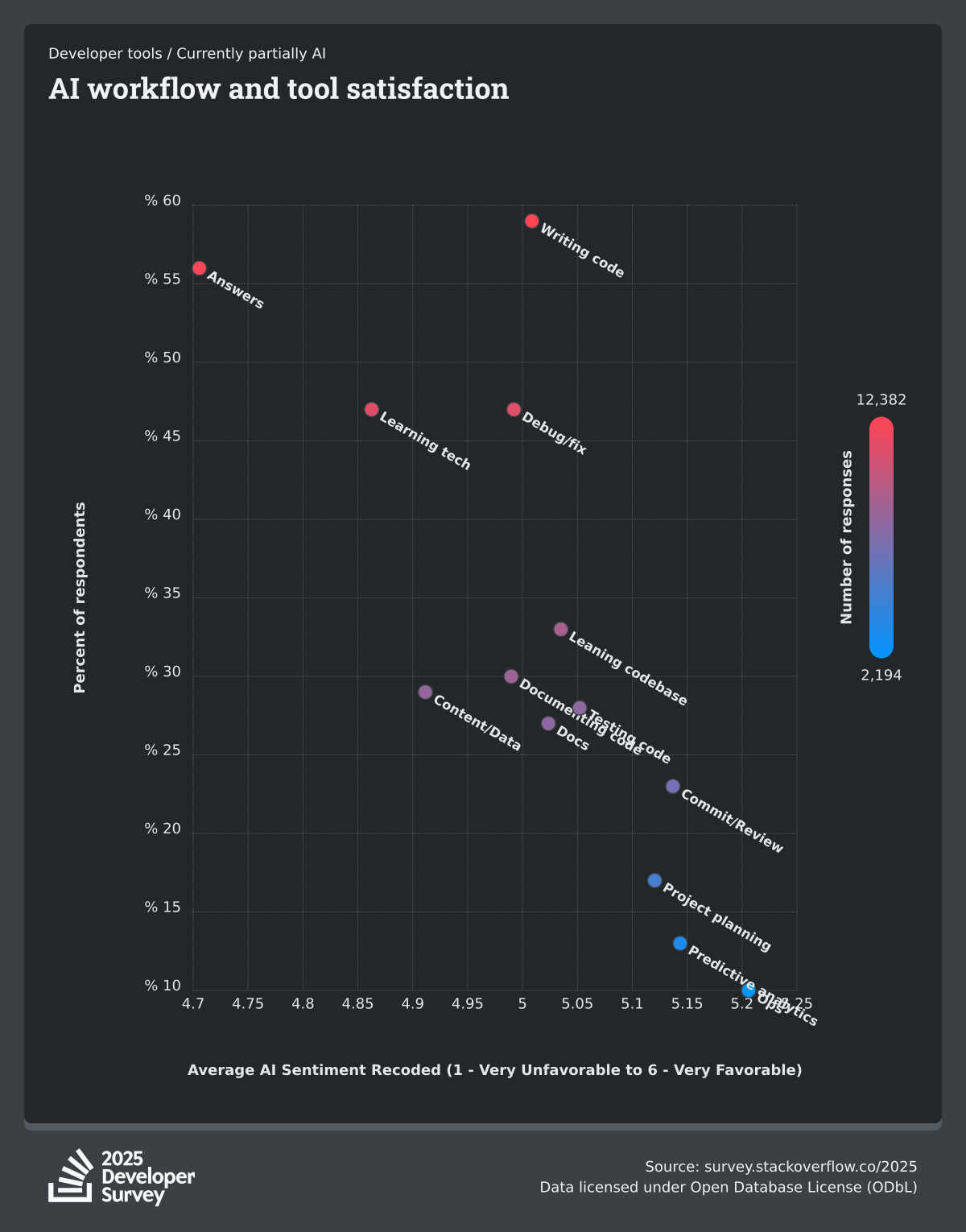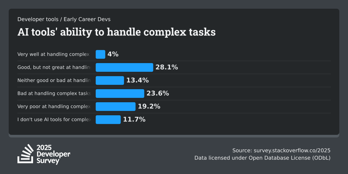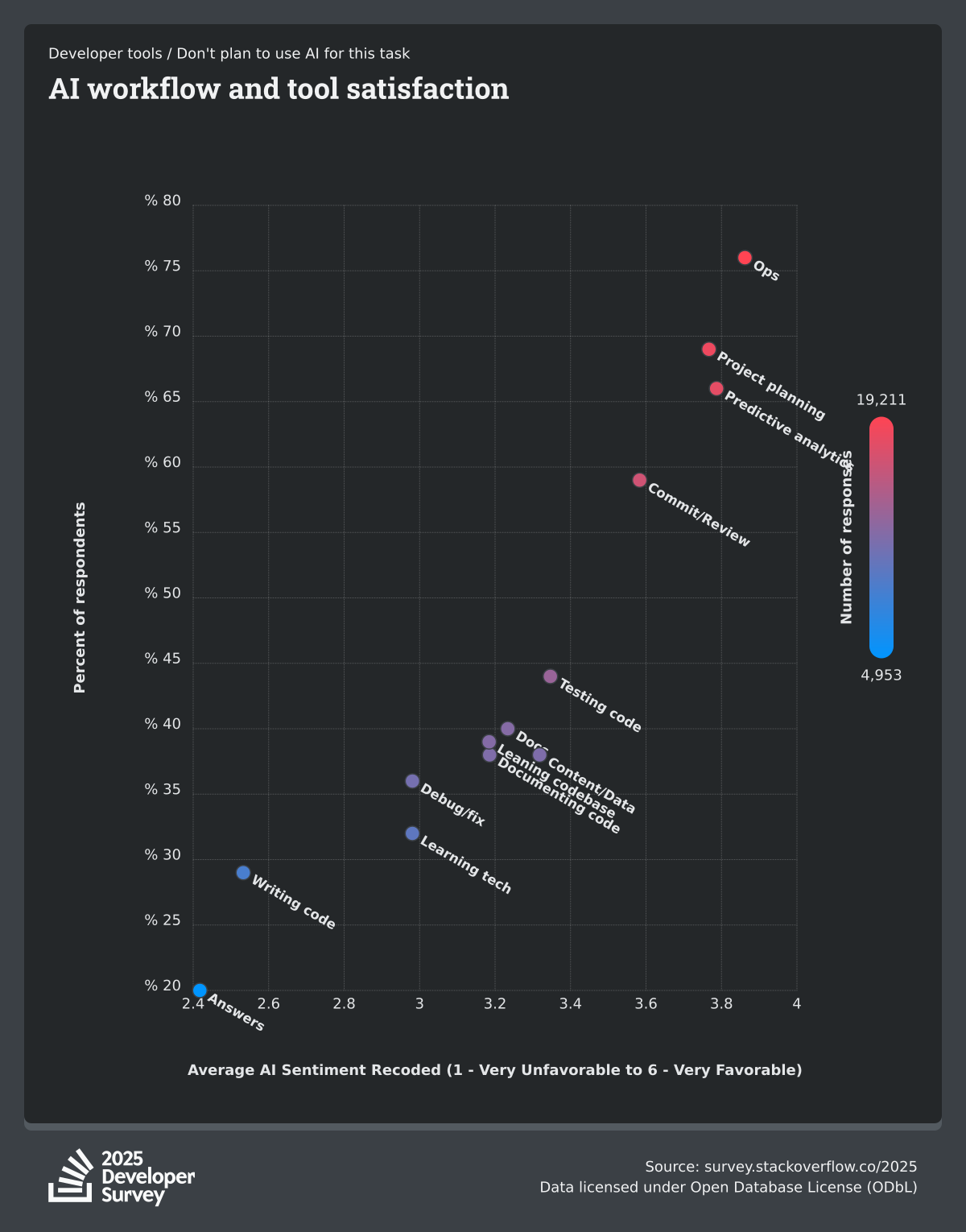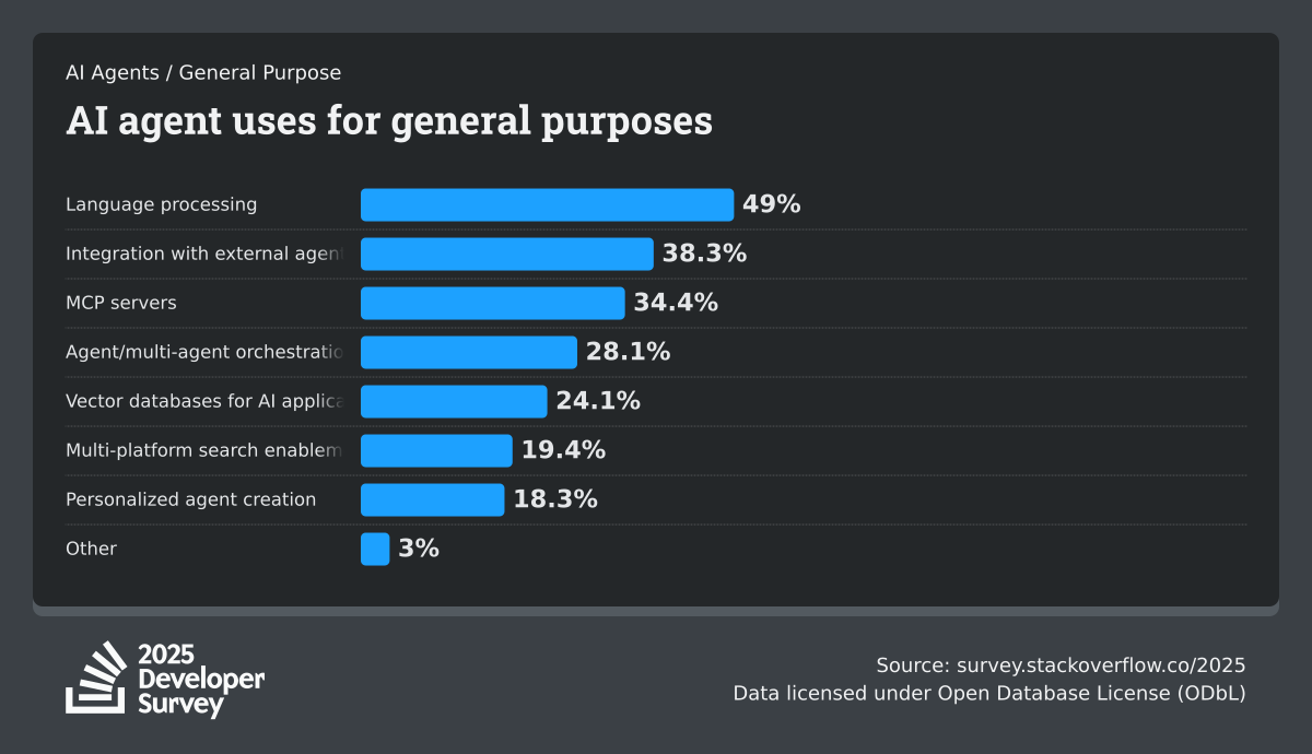 84% of respondents are using or planning to use AI tools in their development process, an increase over last year (76%). This year we can see 51% of professional developers use AI tools daily.