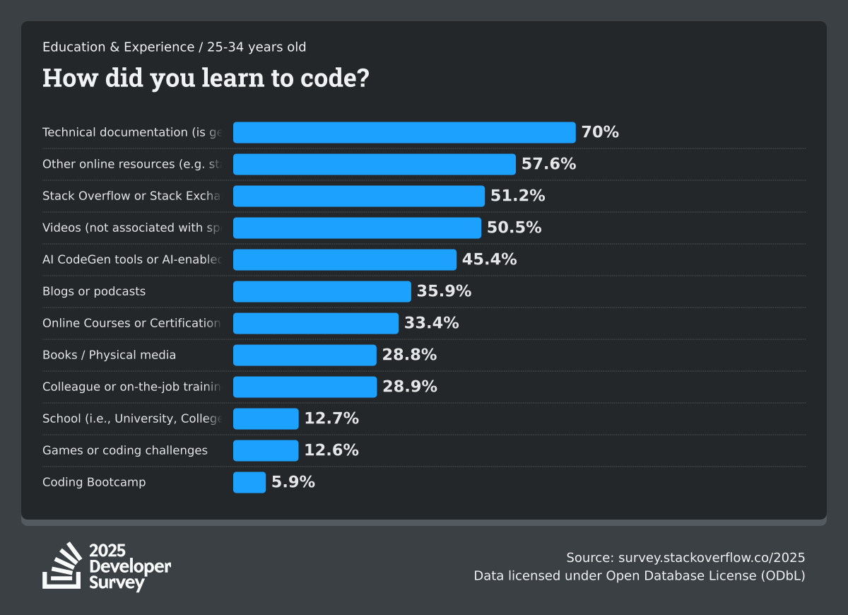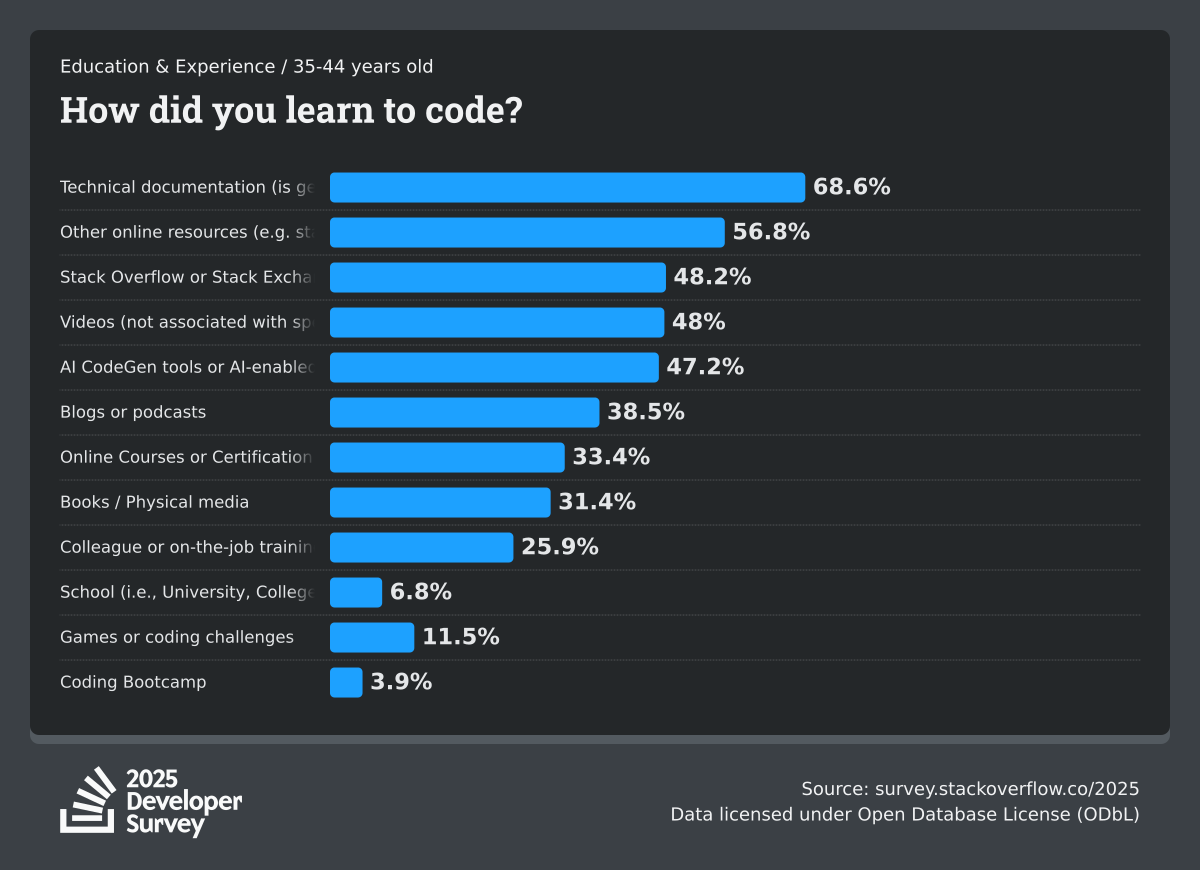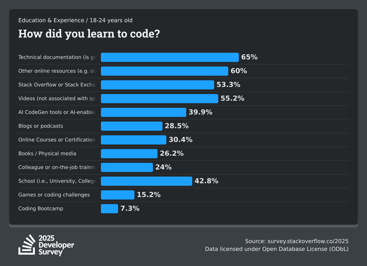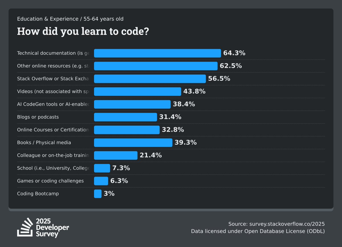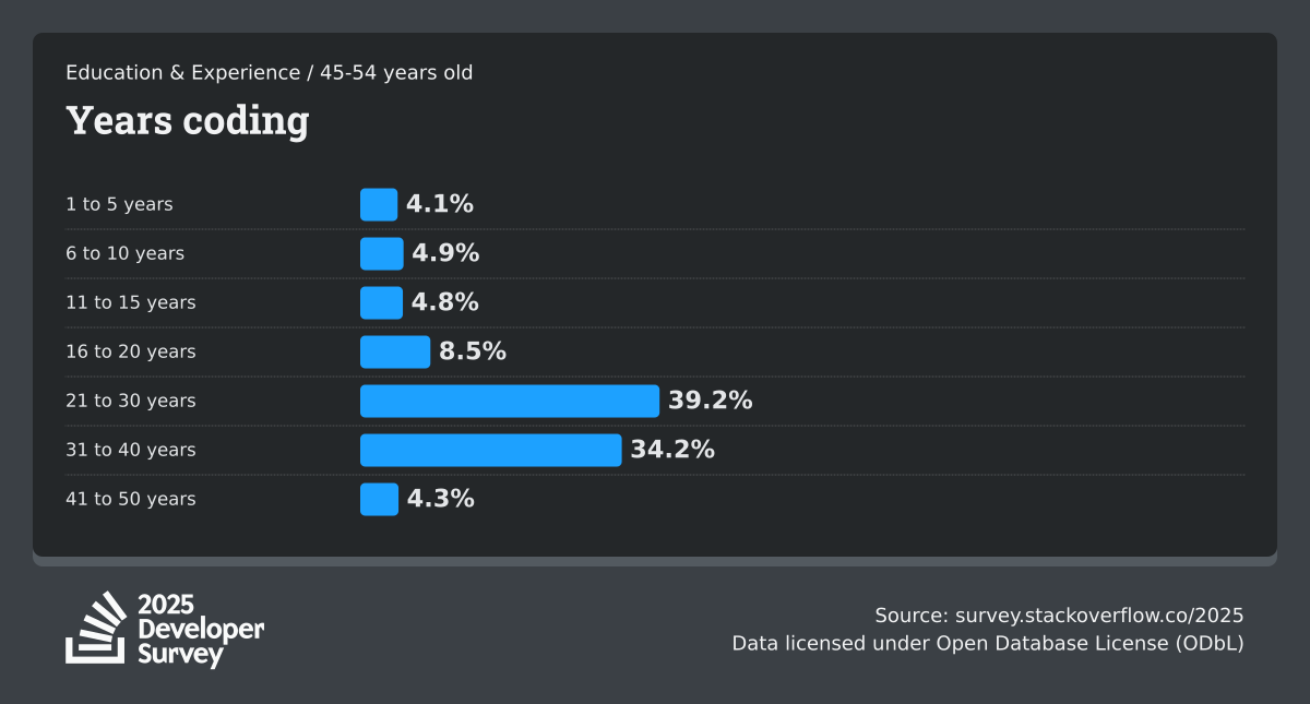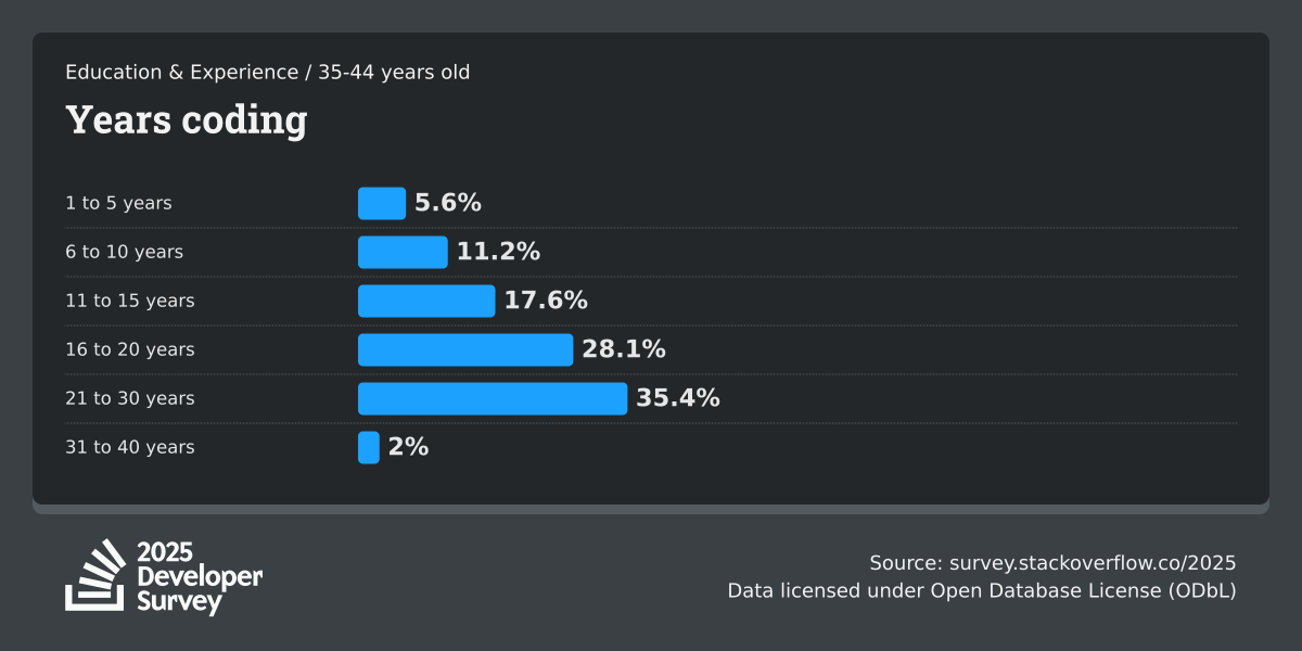 The Developer Survey is meant to explore insights for those that code. A majority of respondents (76%) are professional developers with an additional 15% that are aspirational or adjacent.