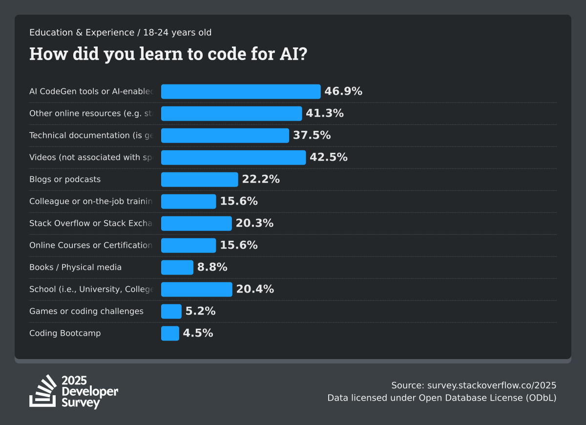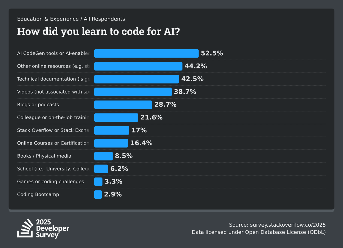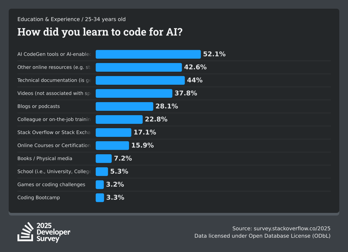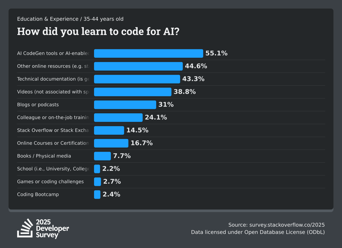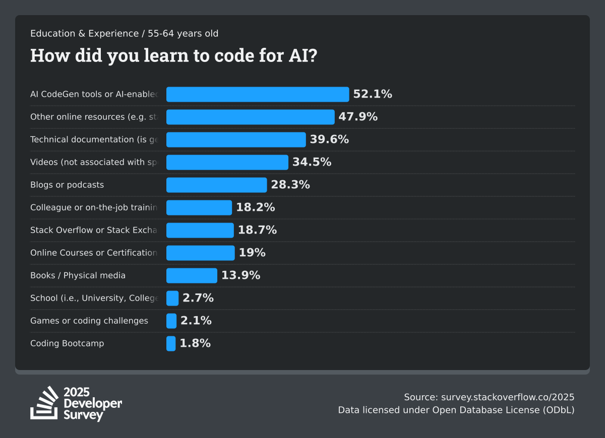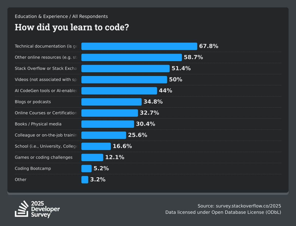 The Developer Survey is meant to explore insights for those that code. A majority of respondents (76%) are professional developers with an additional 15% that are aspirational or adjacent.